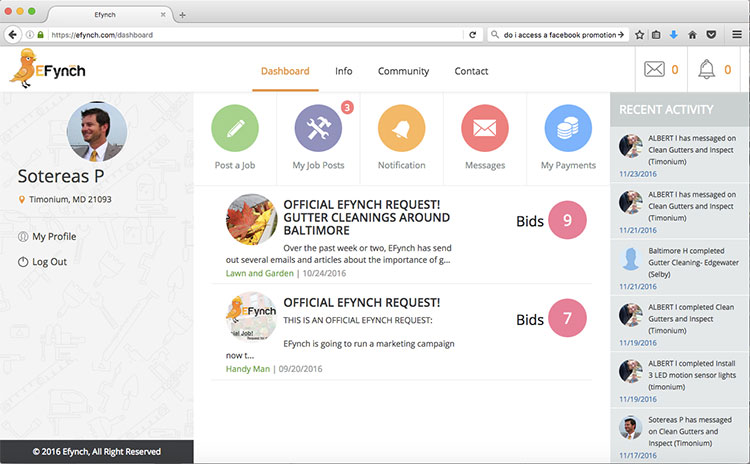 That's the basic idea behind EFynch, which allows homeowners to privately advertise work they need done around the house and allows contractors to bid on each job. But part of what sets EFynch apart from similar platforms is competitive bidding, Pantazes said.